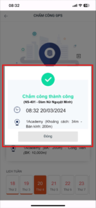 Sau khi chấm công GPS thành công, màn hình mobile sẽ hiển thi như sau: