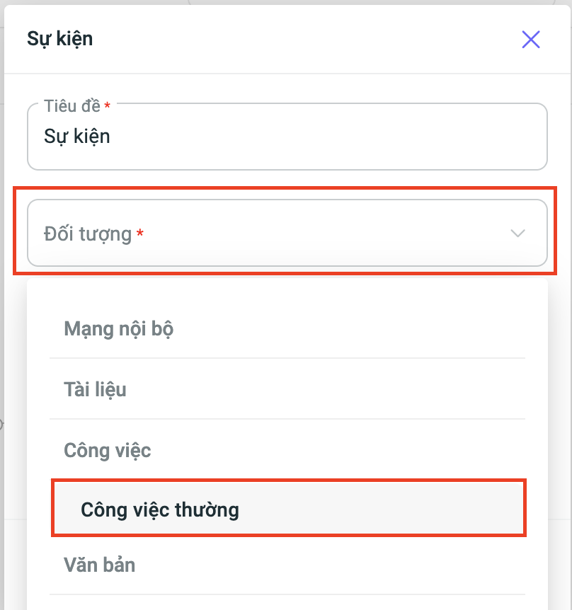 2. Tại node Sự kiện, bổ sung thêm đối tượng Công việc thường