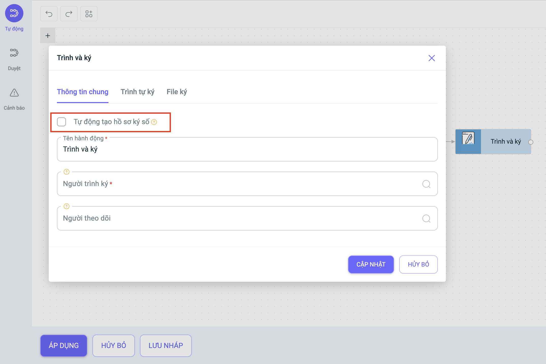 1. Nâng cấp node Tạo hồ sơ ký số: