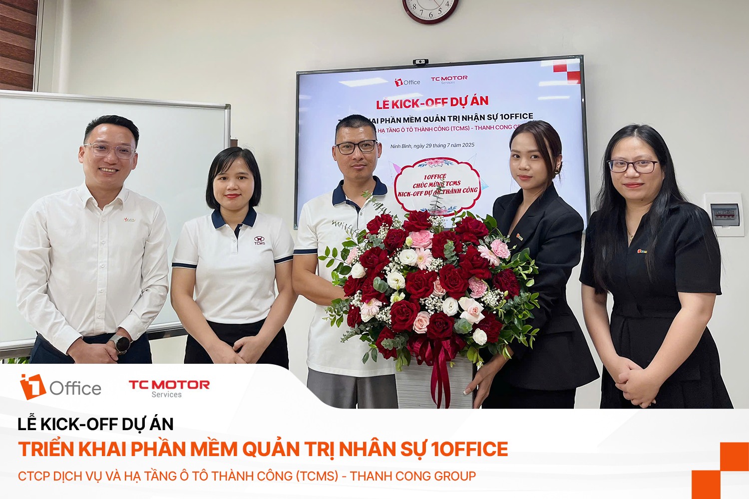 Ngày 29/07/2025, CTCP Dịch vụ và Hạ tầng Ô tô Thành Công (TCMS) – đơn vị nắm giữ vai trò then chốt trong hệ sinh thái Thành Công Group đã chính thức kick-off dự án triển khai phần mềm quản trị nhân sự 1Office, đánh dấu bước chuyển chiến lược trong lộ trình chuyển đổi số và hiện đại hóa toàn diện bộ máy quản trị nhân sự.